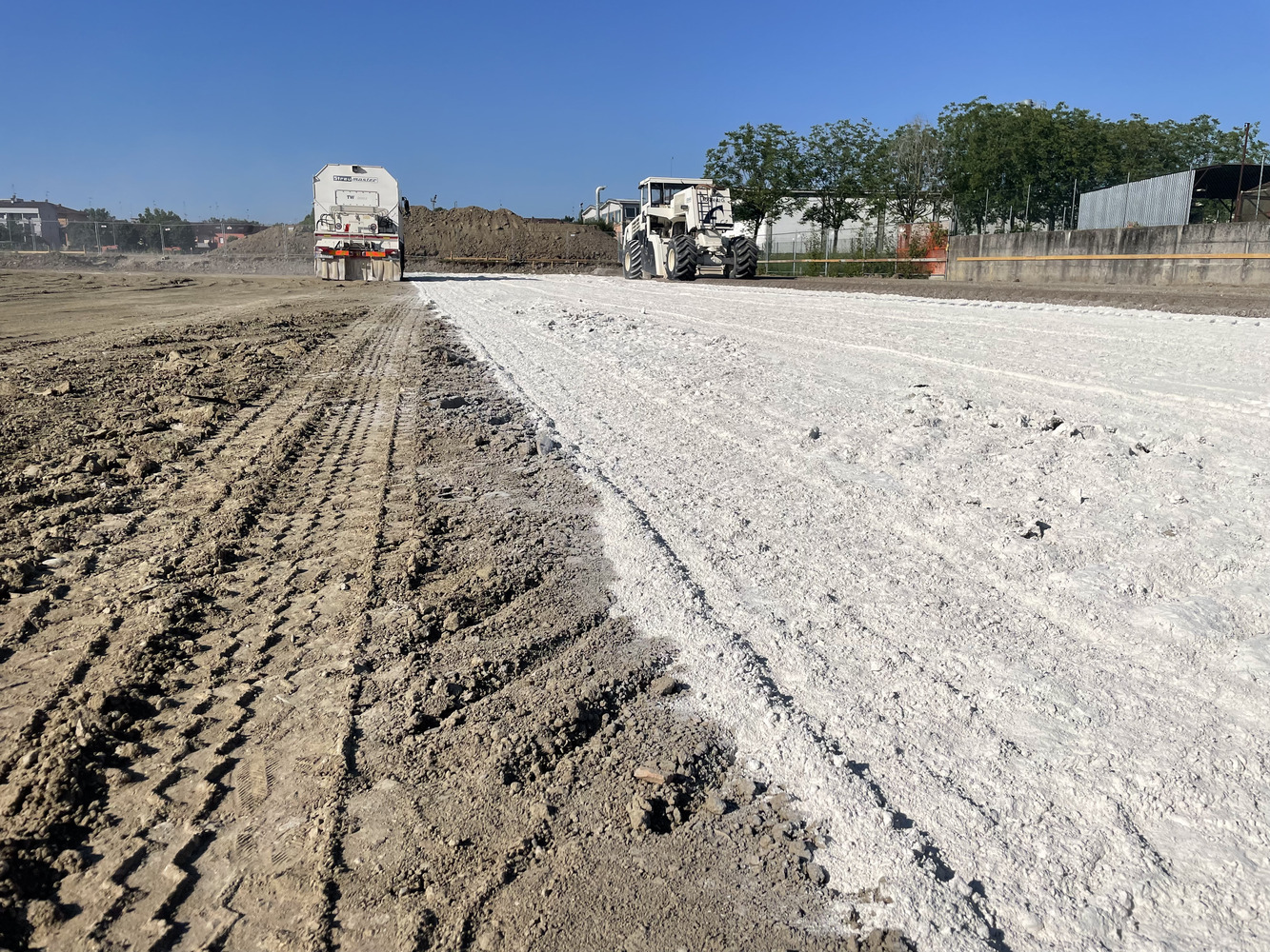 Dagli anni ’90, siamo pionieri nella stabilizzazione dei terreni a calce, una tecnica strategica per trasformare terreni difficili in basi solide, ideale per lotti destinati all’urbanizzazione. La miscelazione omogenea di terra e calce migliora drasticamente lavorabilità e resistenza meccanica. I risultati sono significativi: diminuzione netta indice di plasticità; diminuzione limite di ritiro; aumento durezza, coesione e resistenza alla penetrazione; aumento resistenza al gelo; diminuzione variazioni di volume da parte del terreno. Questo composto è una soluzione robusta e versatile, fondamentale per bonifica, piani di posa, rilevati, sottofondazioni e sovrastrutture.